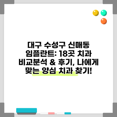 ✅ 대구 수성구 신매동 18곳 치과의 임플란트 가격, 시술 방법, 후기 등을 비교 분석하여 나에게 딱 맞는 치과를 찾아보세요! 신중한 선택을 위한 필수 정보를 제공합니다.
