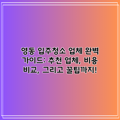 ✅ 영동 입주청소, 어떤 업체를 선택해야 할까요? 추천 업체부터 비용 비교, 꿀팁까지! 지금 바로 확인하세요!