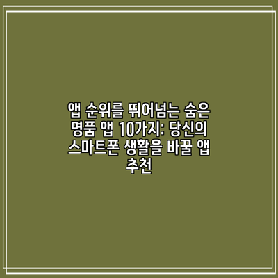앱 순위를 뛰어넘는 숨은 명품 앱 10가지: 당신의 스마트폰 생활을 바꿀 앱 추천
