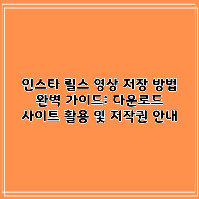 인스타 릴스 영상 저장 방법 완벽 가이드: 다운로드 사이트 활용 및 저작권 안내