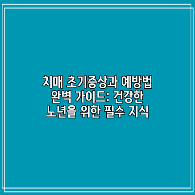 치매 초기증상과 예방법 완벽 가이드: 건강한 노년을 위한 필수 지식